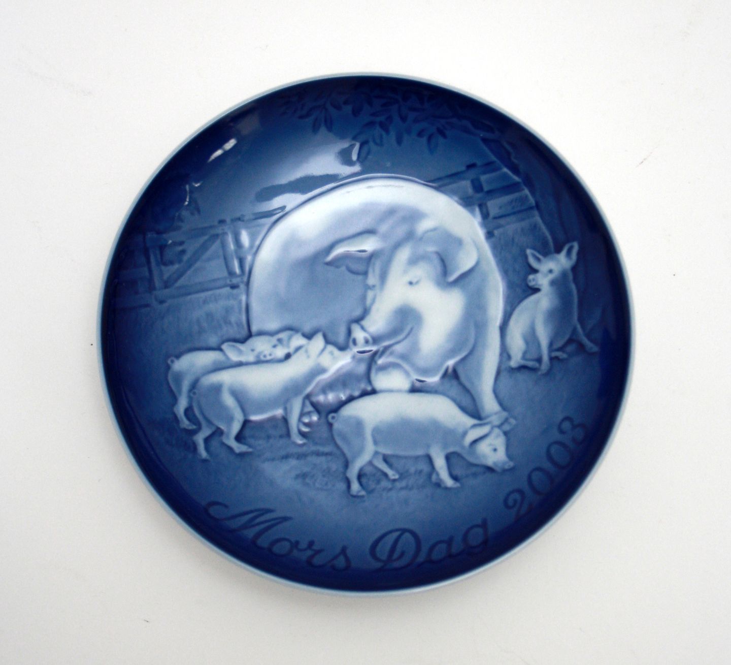 Bing & Grøndahl, Mors dag platte 2003. Gris med unger. Diameter 15 cm. Pris: SOLGT