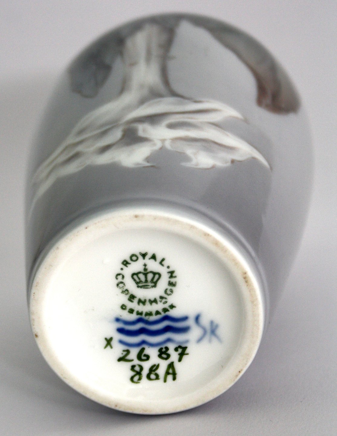 Royal Copenhagen, Vase med hængeblomst art nouveau. 2687/88A. Højde 12,5 cm. Øverste diameter 4,7 cm. I. sortering. Pris: 225 kr. stk. Lager: 1