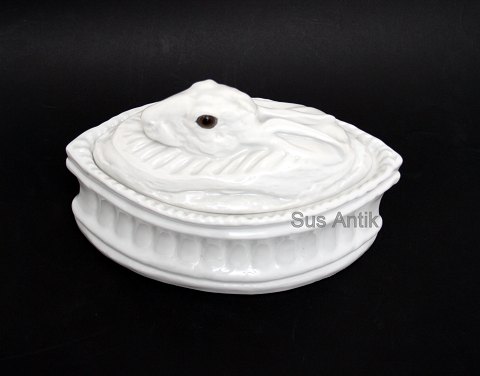 Knabstrup, Knabstrupstellet i azurfarvet glasur. Lagkagefad. Diameter 27,5 cm. II. sortering. Produktionsrevne på kanten af foden. Pris: SOLGT