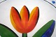 Kosta Boda, Tulipa fad med rød tulipan i klart glas og matteret i underdelen. Designet af Ulrica Hydman-Vallien. Diameter 32,5 cm. Lettere brugsslid i form af malingafskalning. Pris: SOLGT