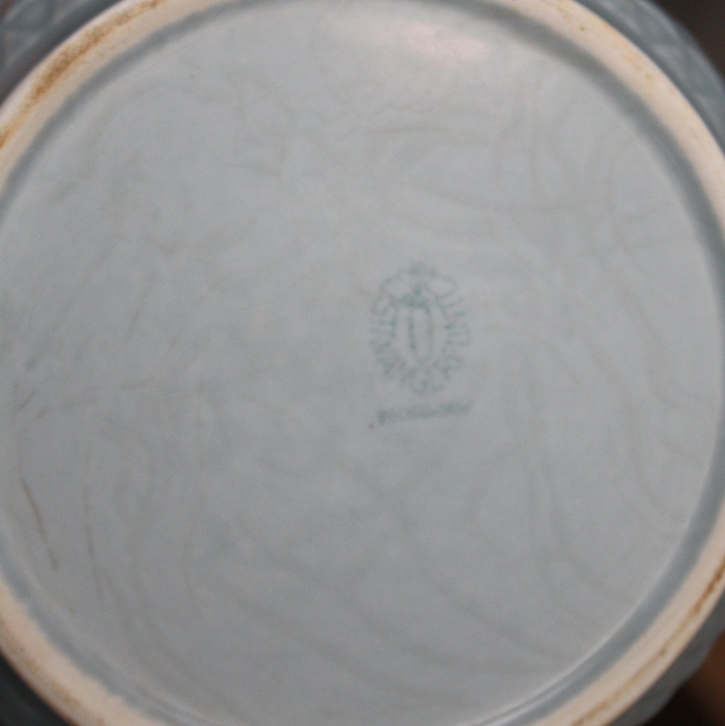 Stavangerflint, Norway, Blue Pacific. Tekande. Designet af Inger Waage i 1960erne. Højde 17 cm. Længde 22 cm. Bemærk at blomsterranken er lysere end på foto. Pris: SOLGT