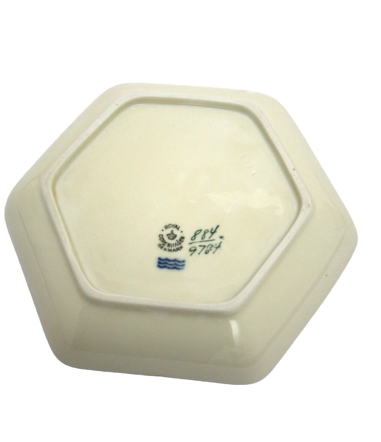 Royal Copenhagen, Hjertegræs, Sekskantet skål. Nr. 884/9784. Diameter 17-18,5 cm. Højde 3 cm. II. sortering. Pris: 175 kr. stk. Lager: 1