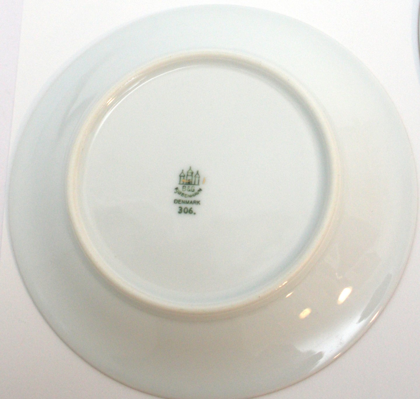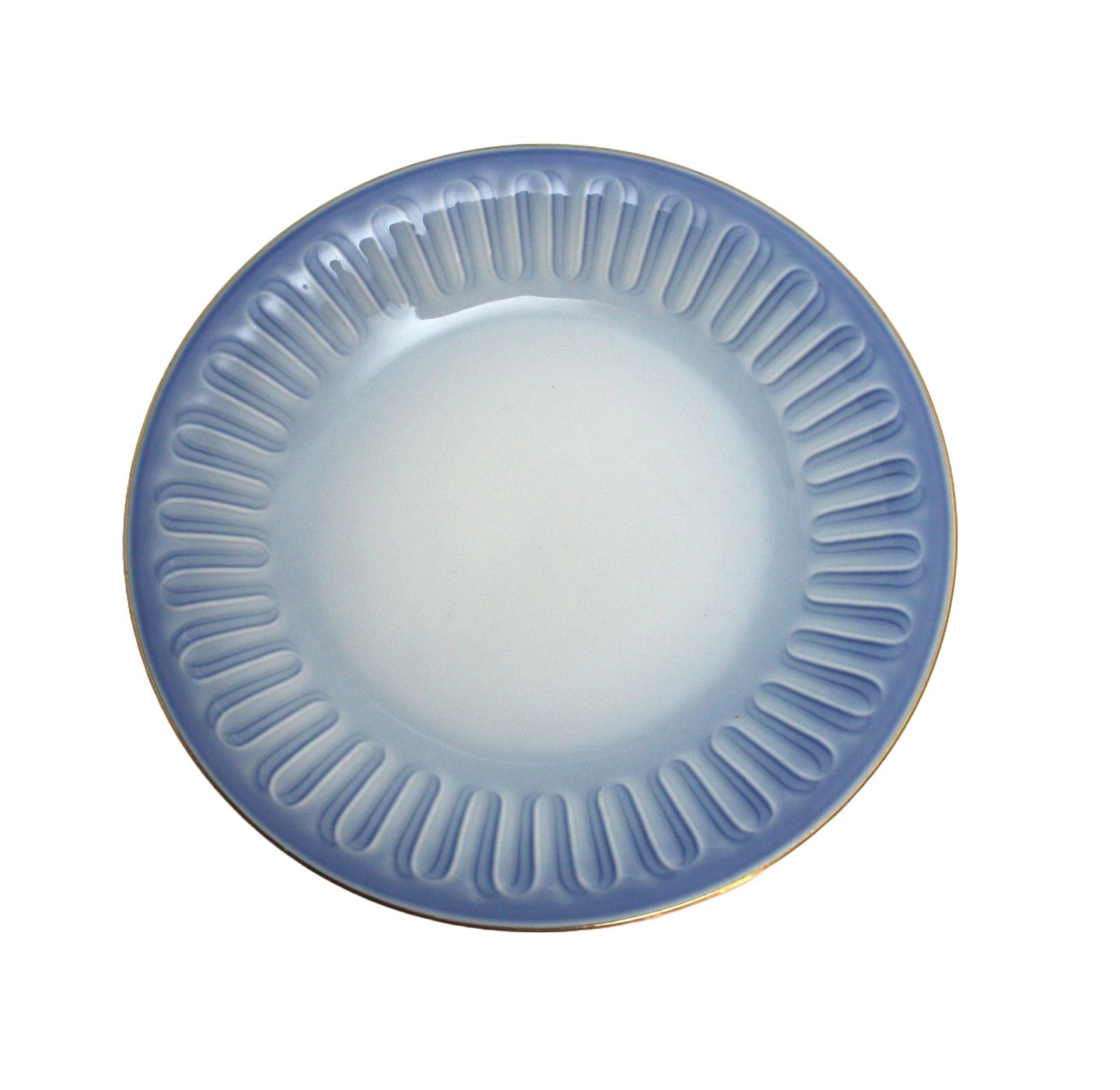 Bing & Grøndahl, Ballerina med guldkant, lyseblåt porcelæn. Sidetallerken. Nr. 306. Diameter 16 cm. Fin stand. Pris: 30 kr. stk. Lager: 20