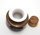 Holmegaard, Palet, Umbra køkkenserie, krydderikrukke med korkprop med krydderinavn efterfulgt af hjerte. Paprika. Designet af Michael Bang i 1969, udgår i 1973. Højde med prop ca. 8,5 cm. uden prop ca. 7 cm. Diameter ca. 8 cm. Pris: 225 kr. stk. Lager: 1