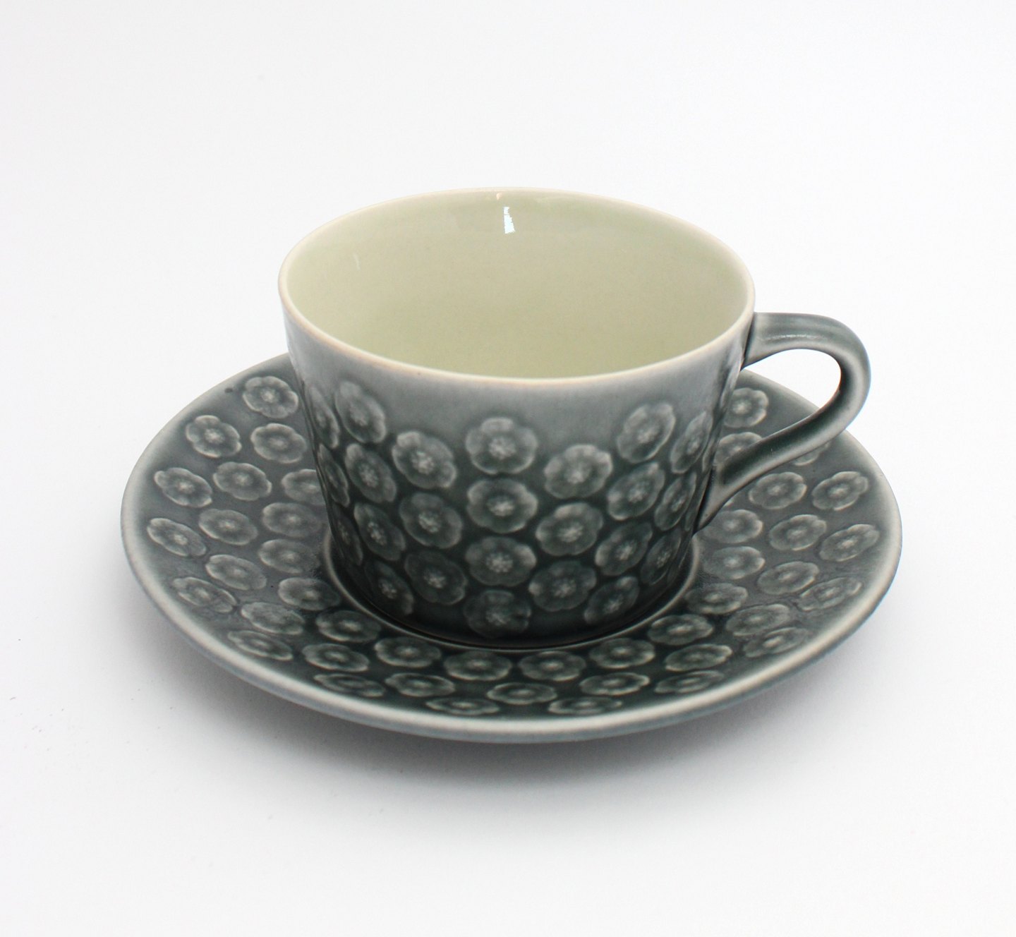 Tekop med underkop. Højde 6 cm. Diameter 8,5 cm. Underkop 15 cm. Flot stand. Pris: SOLGT