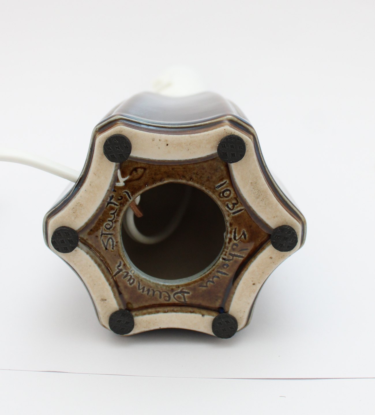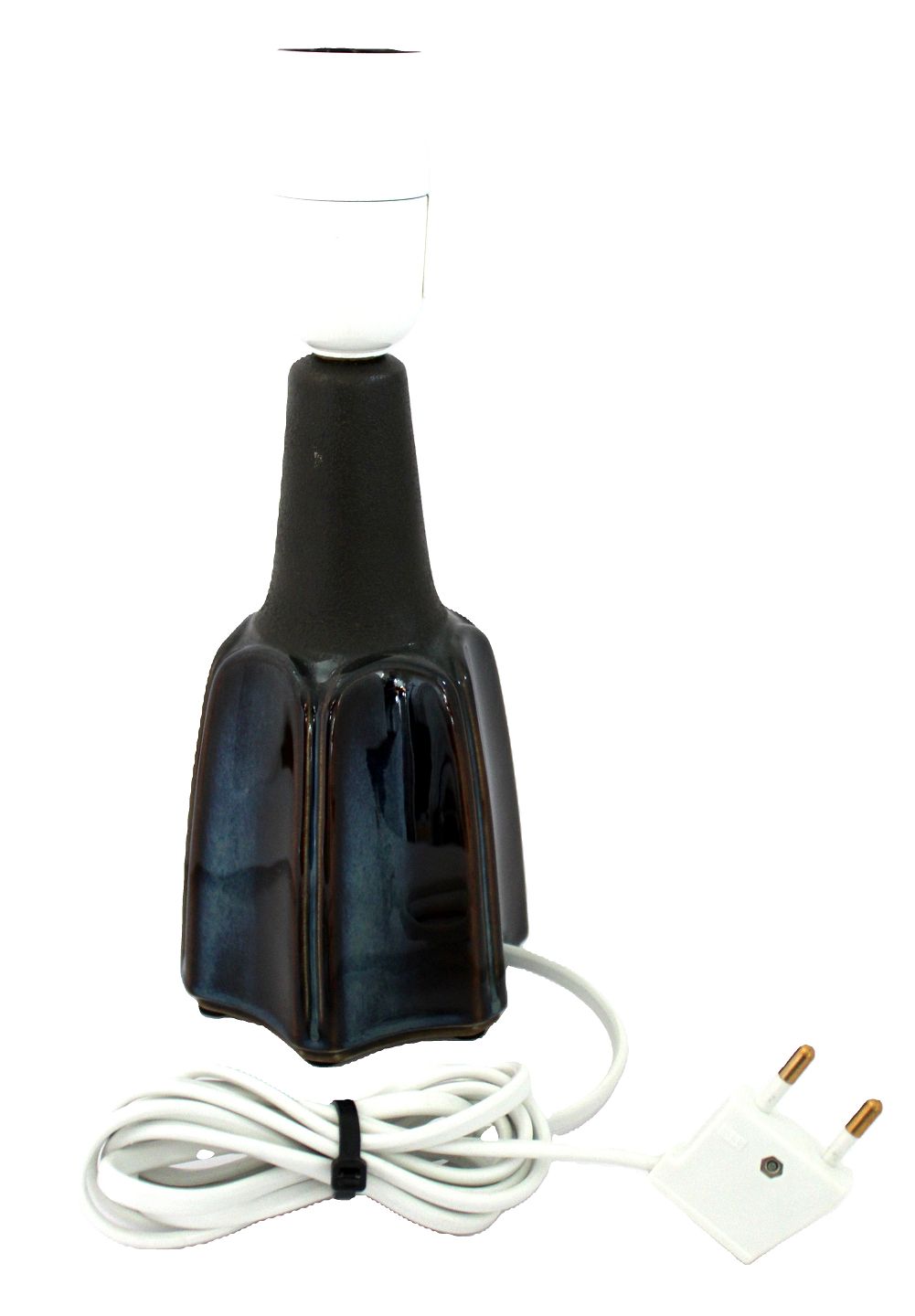 Søholm, Bornholm, Flot 1970'er bordlampe i blå glasur med uglasseret hals. Designet af Ejnar Johansen. Nr. 1931. Højde incl. fatning 26 cm. Nederste diameter 10,5. Pris: SOLGT