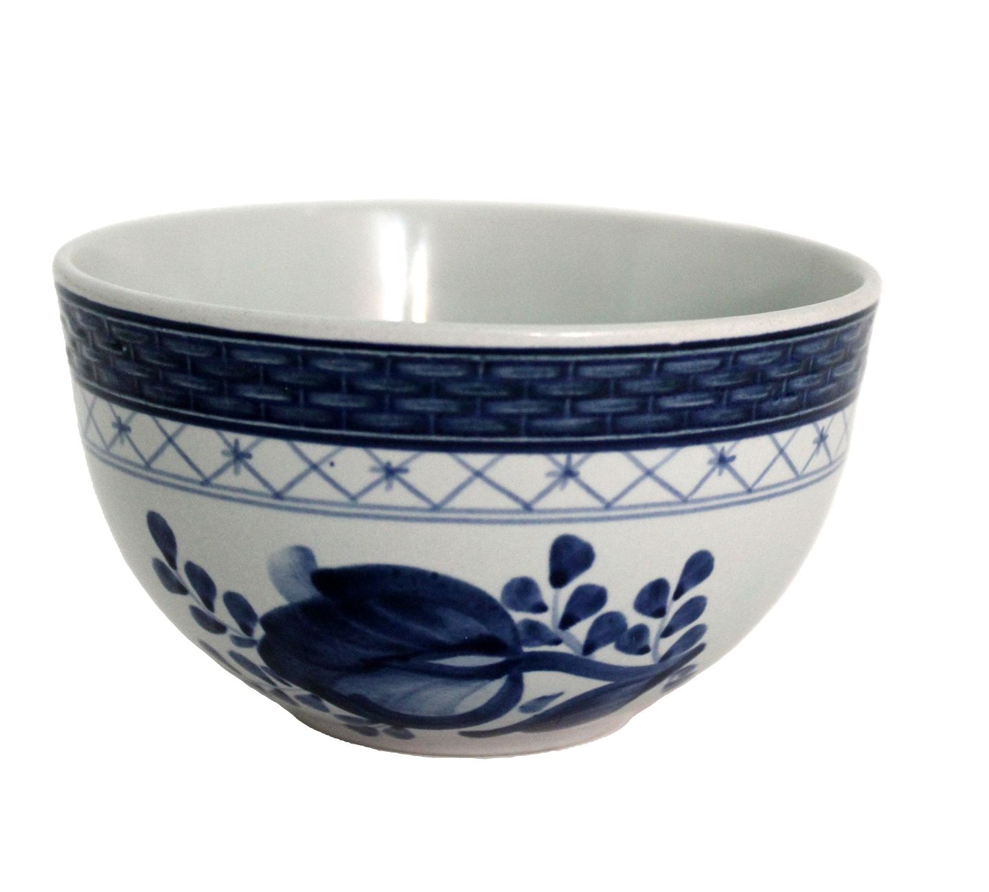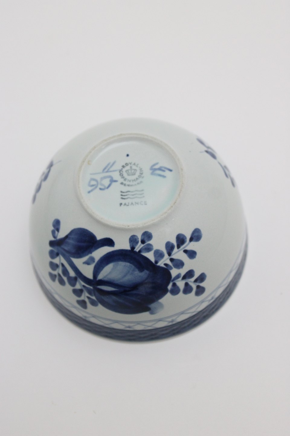 Royal Copenhagen, Tranquebar lyseblå fajance med mørkeblå tulipan og flettet bort designet af Christian Joachim. Produceret fra 1914 til 1969, hvor det overgik til Royal Copenhagen. Håndmalet.