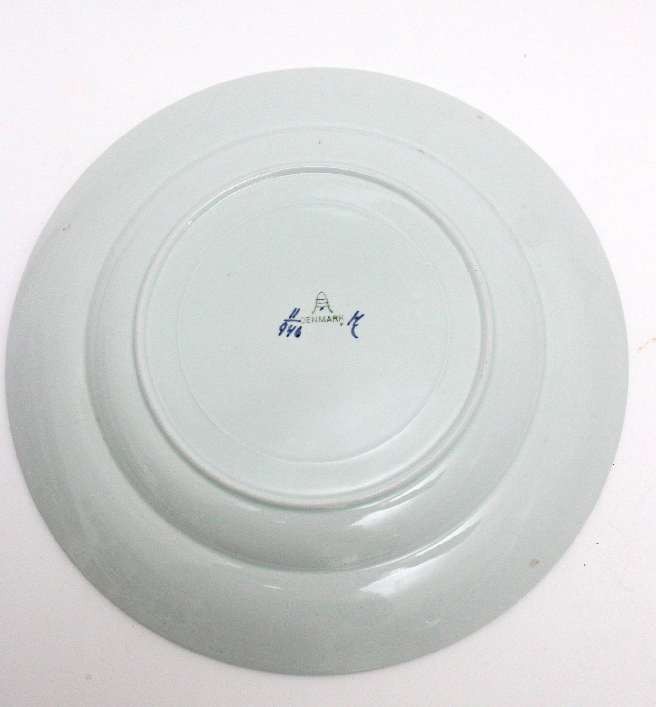 Lille middag eller stor frokosttallerken. Nr. 11/946. Diameter 22,5-23 cm. Farven varierer fra meget mørke blå til lysere blå, se forskellen på de 2 fotos. Flot stand. Pris: 125 kr. stk. Lager: 14