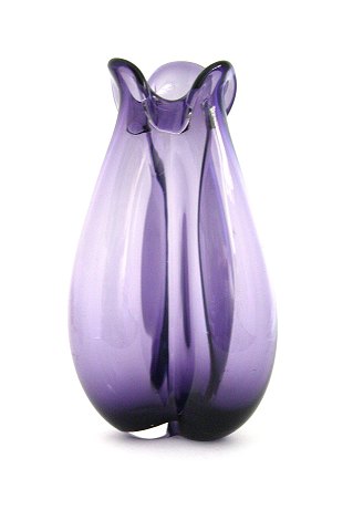 Holmegaard, Karen Blixen rød vase, støvet rosa indvendig. Designet af Anja Kjær fra 2000. Signeret. Vasens form er inspireret af afrikanske kvinders hals og armringe. Højde 17 cm. Diameter 14 cm. Pris: SOLGT
