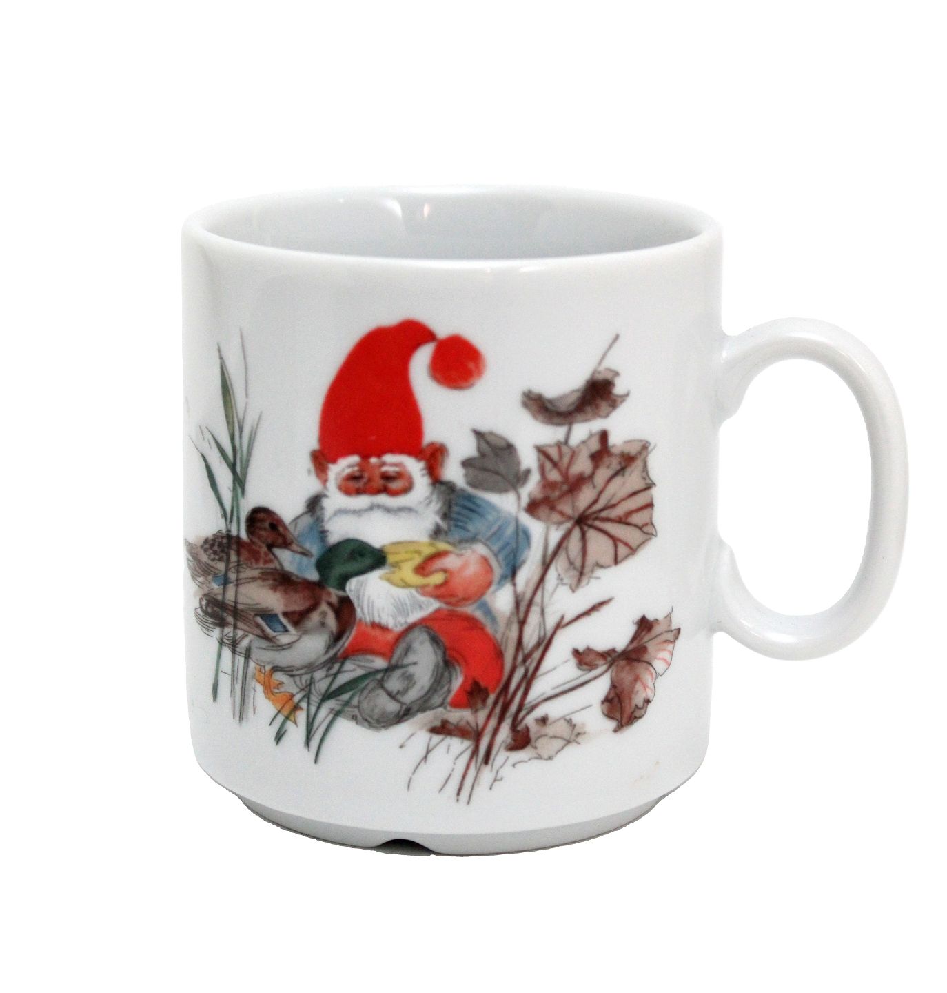 Mads Stage, Julekrus. Julen 1996. Gammel nisse der fodrer 2 ænder. Højde 8 cm. Diameter 7,5 cm. Pris: 150 kr. stk. Lager: 3