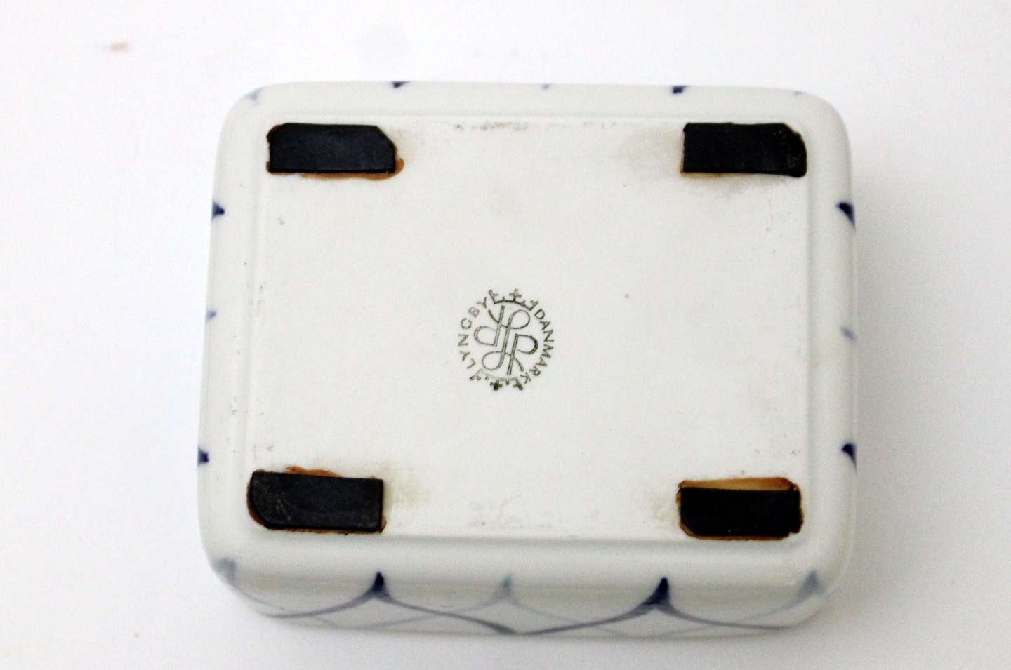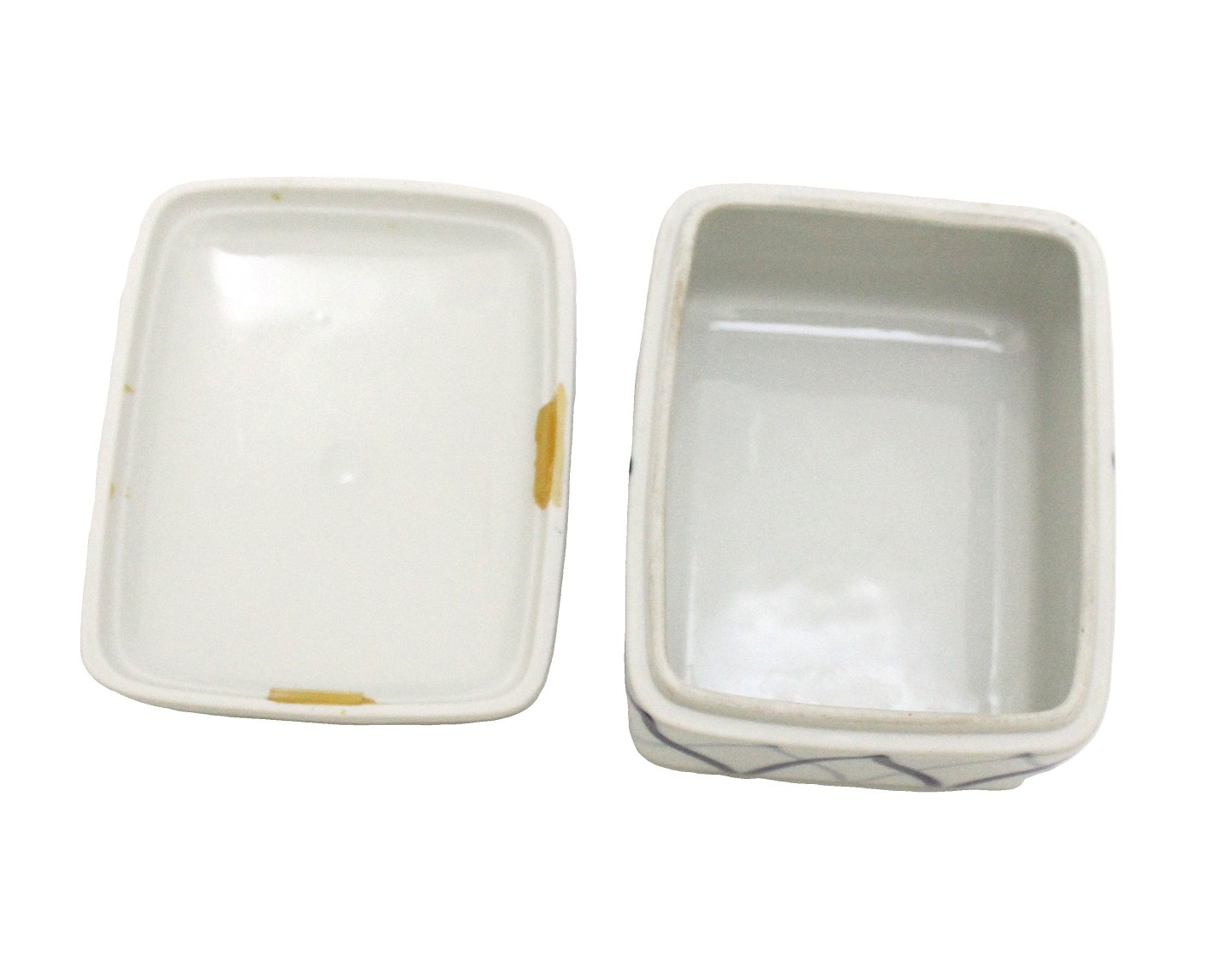 Længde 12 cm. Bredde 9,5 cm. Højde 6,5. Bemærk der er sat gummibeskytter på underside af låg og bund. Låget er hvidt og kan bruges til andre Dan-ild serier. Pris: 175 kr. stk. Lager: 1