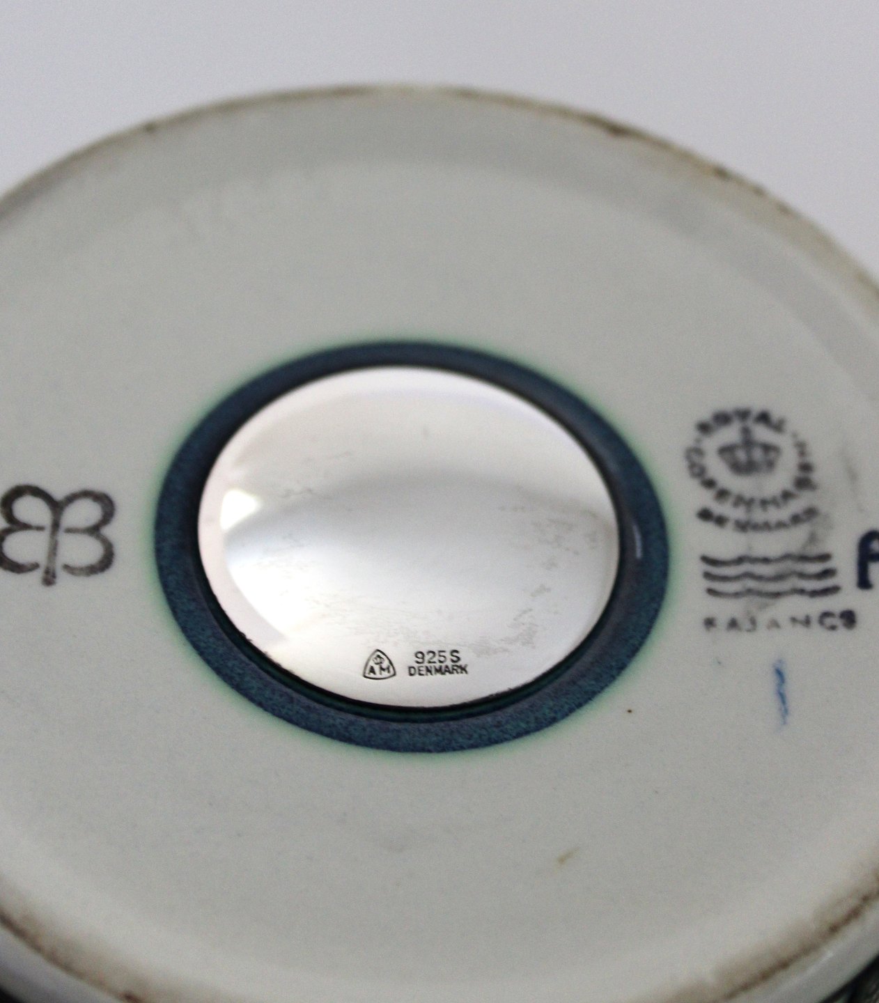 Royal Copenhagen, fajance, Stort årskrus 1975 med 925 sterlingsølv plaquette i bund, den ene med indgraveret tekst. Kunstner Bodil Buch. Nr. 3135. Årskrusene er produceret fra 1967 og frem til 2014. Højde 11,5 cm. Diameter 10,5 cm. I. sortering. Flot stand. Pris: 300 kr. stk. Lager: 2