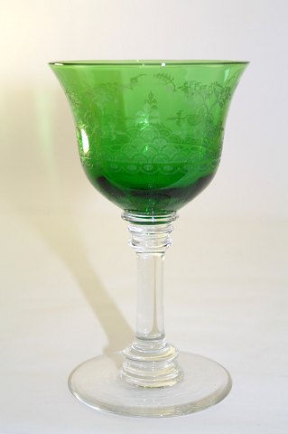 Hvidvinglas med grøn kumme, Knipling med ætset mot