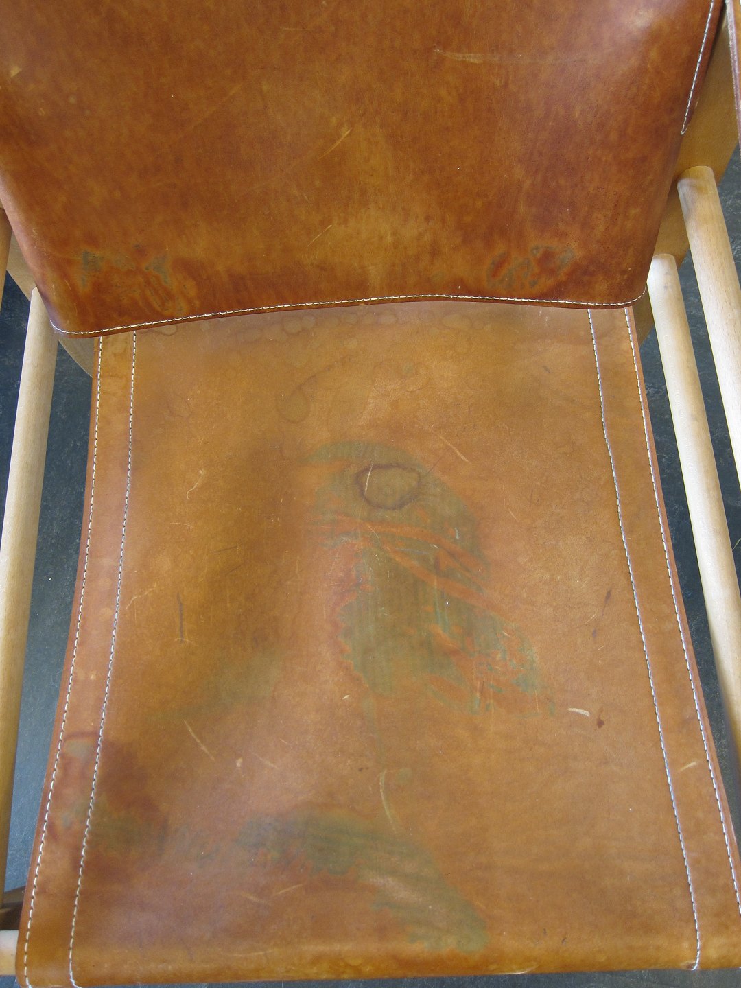Safaristol i kernelæder Fremstillet hos Aage Bruun & søn Bemærk: skjold på sæde, mangler hynde (se også fotos) Varenr.: 1005