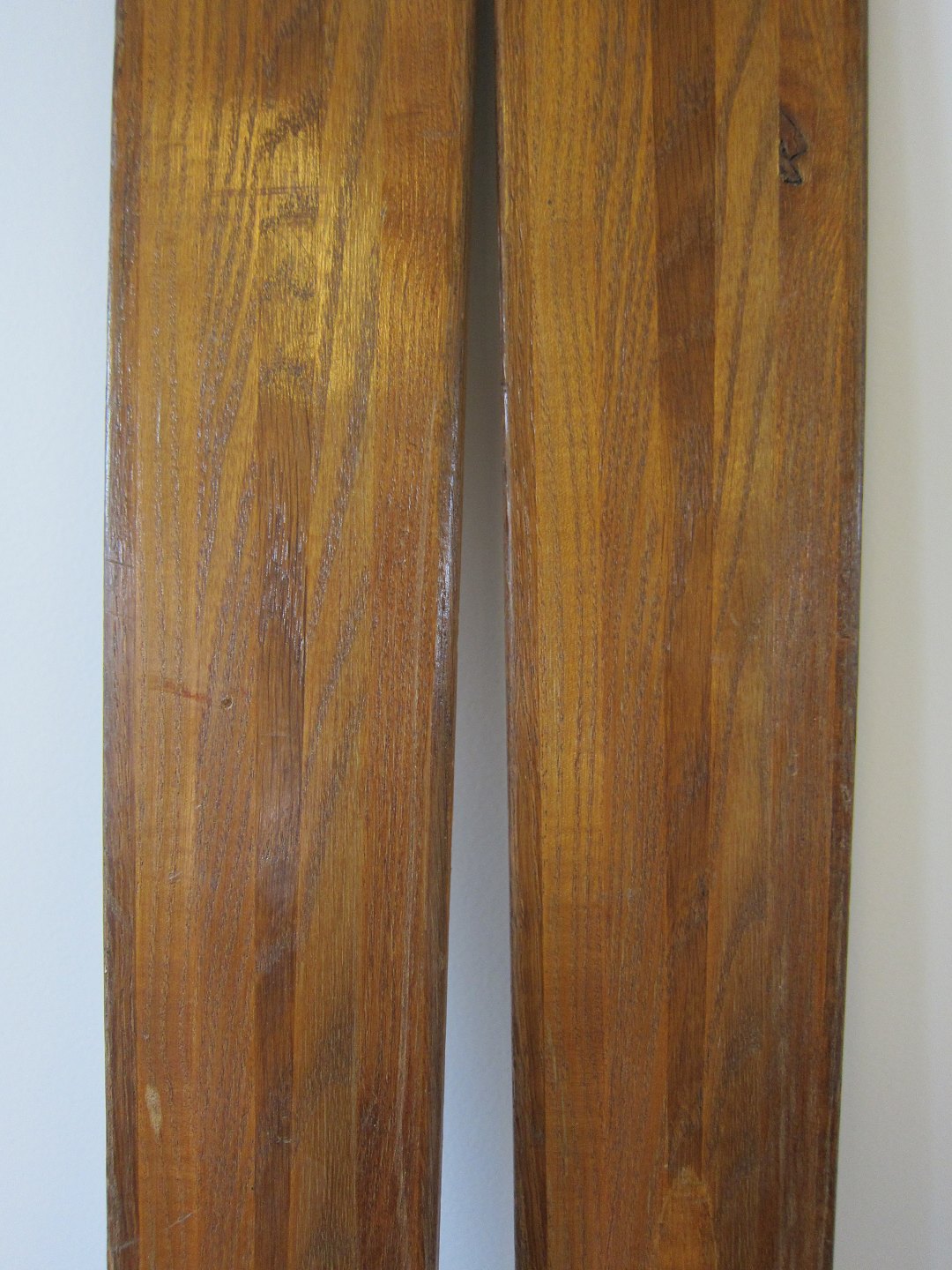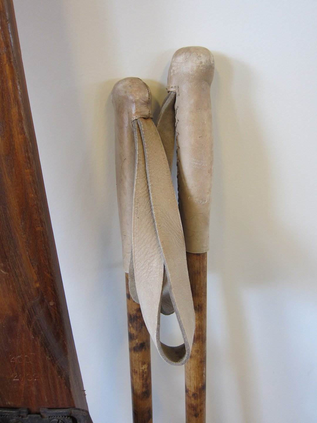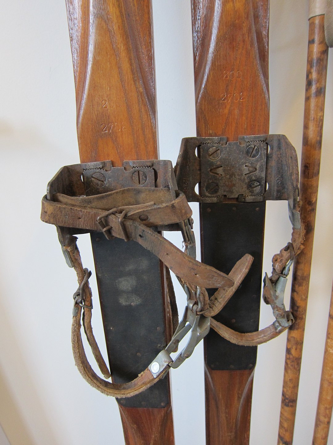 Old Cross-country ski made of wood with bindings and ski sticks (please take a look at the photos)