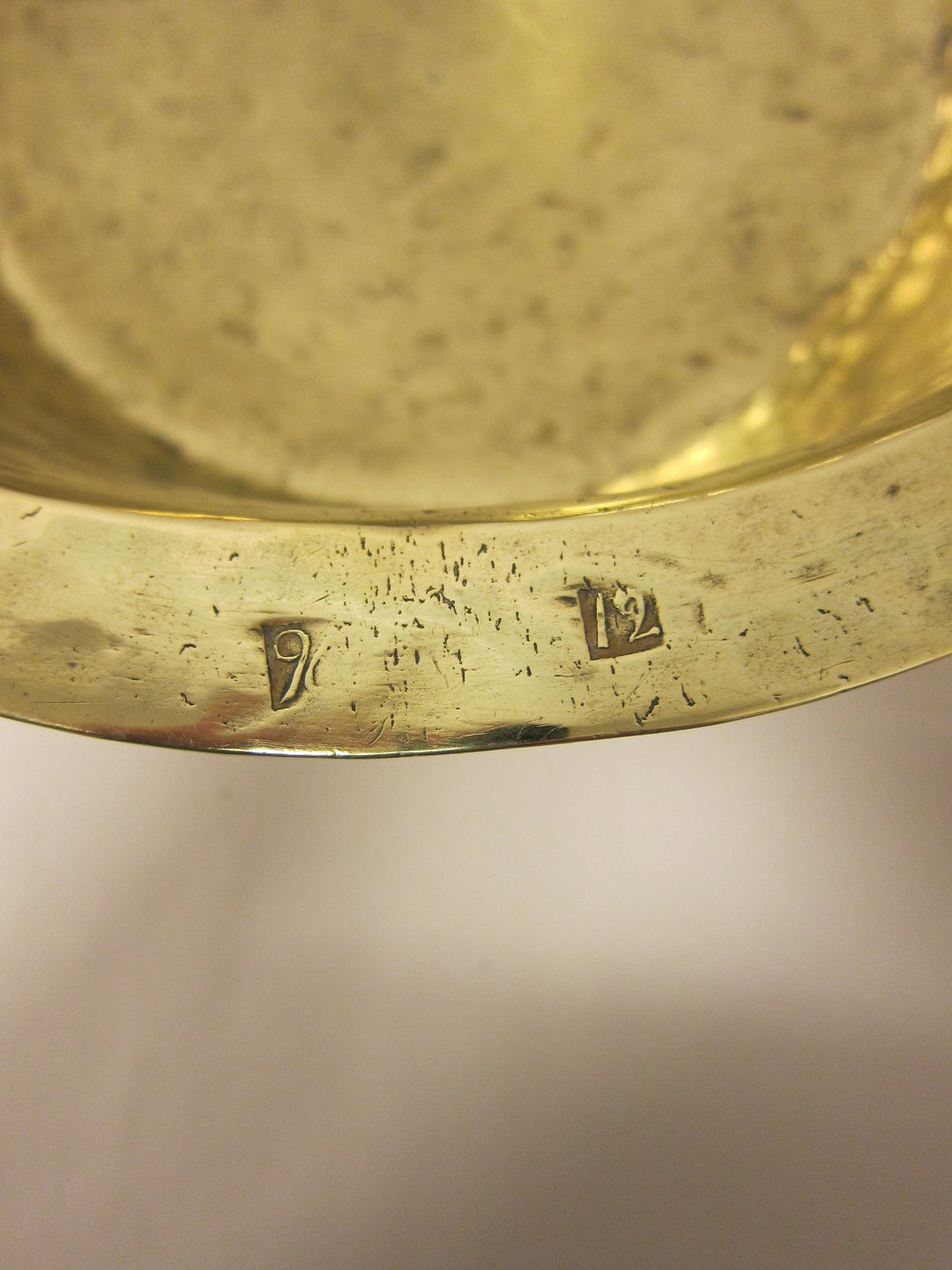 Brass basin/bowl Heavy brass basin/bowl, about 1830 With stamp probably Kobbermølle H: 11,5cm, Diam: 30cm Articleno.: 41313