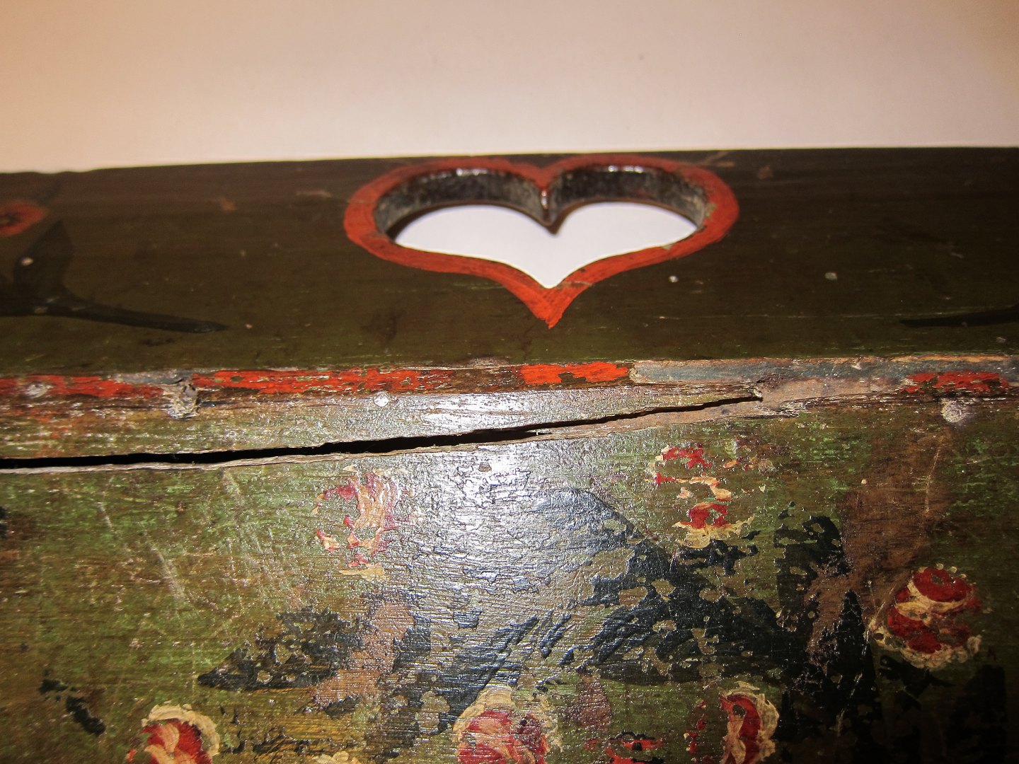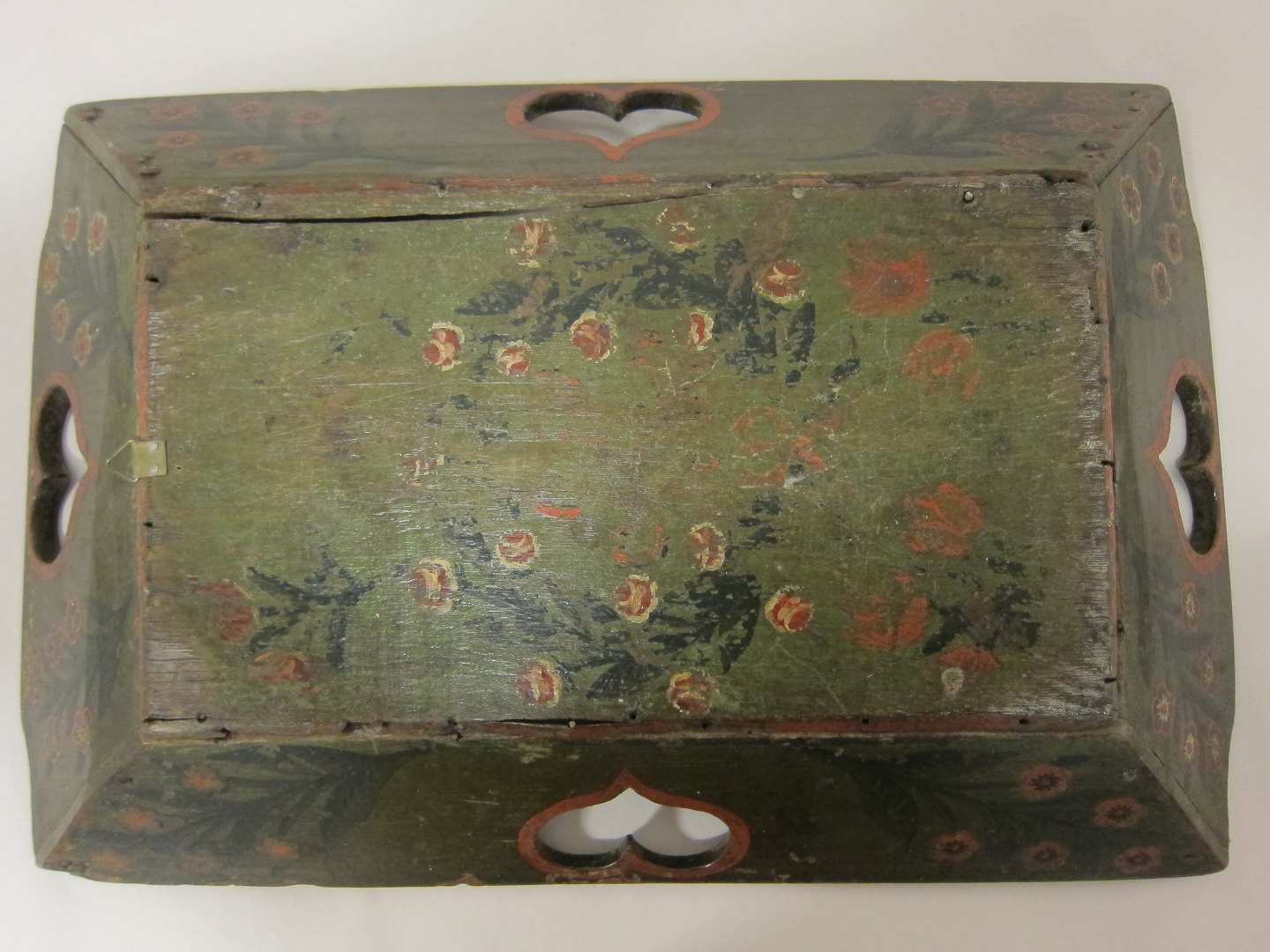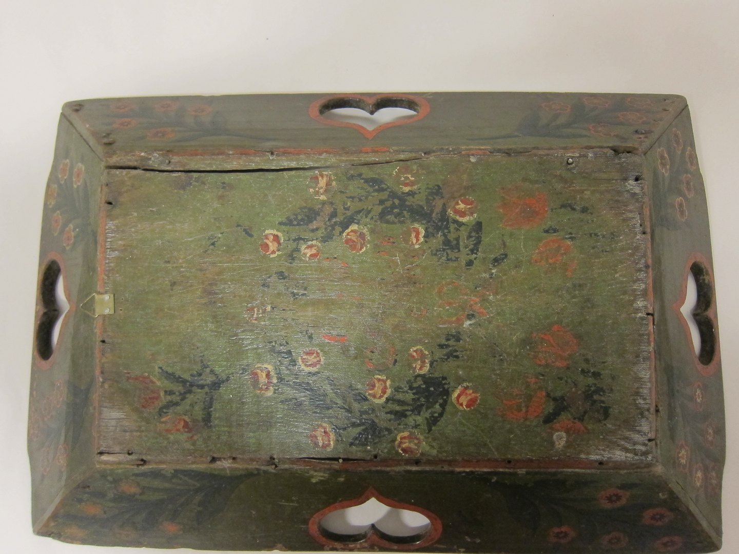 Antik linned-/barselsbakke med original bemaling