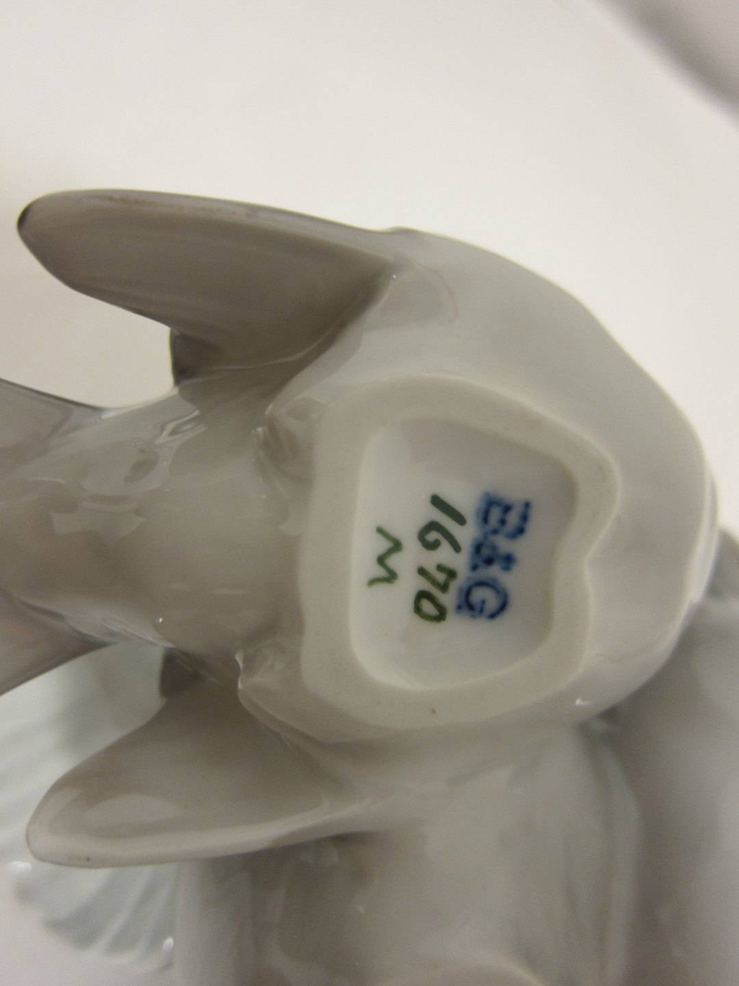 Bing & Grøndahl Spurvefamilie B&G 3 spurve 1. Sortering og god stand Design: Dahl Jensen H: 10cm, B: 18,5cm Stempler Varenr.: 41102