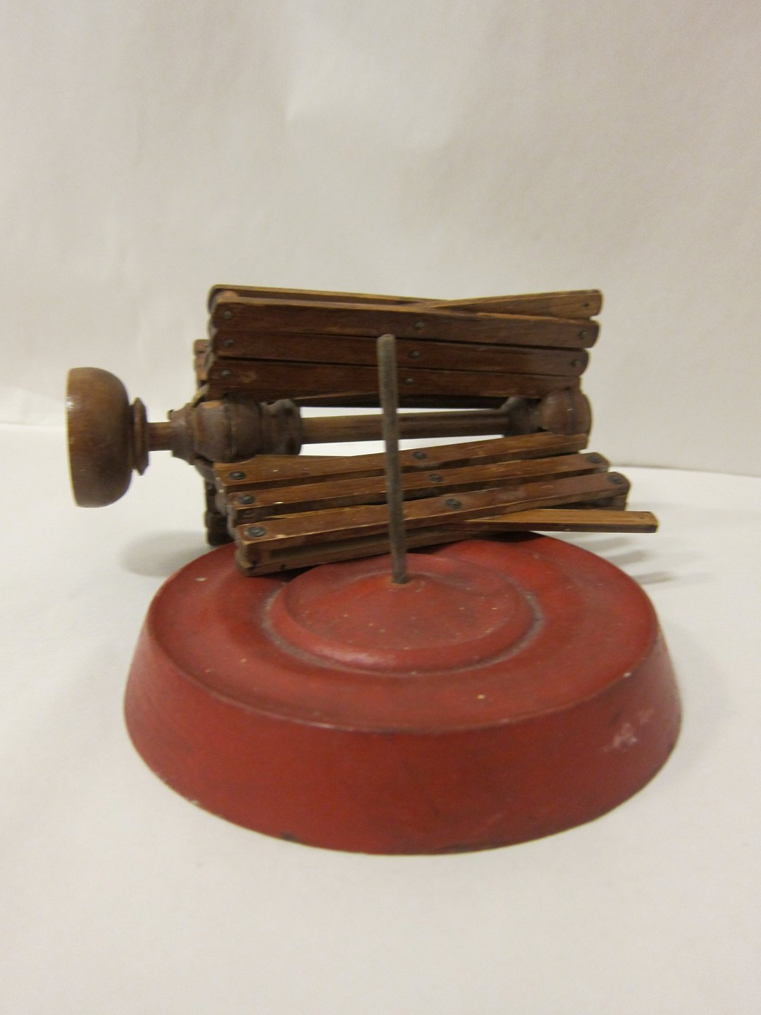 An old, little tool for winding the yarn. Can stay on the table