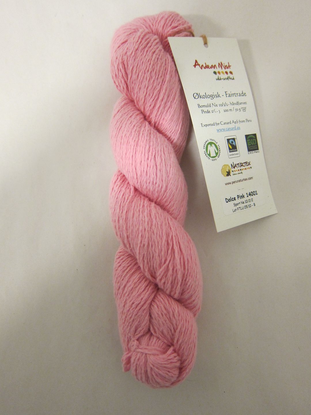 Andean Mist bomuld er et certificeret økologisk naturprodukt fra Peru. Farverne udvindes fra naturen og indfarves i hånden. De rosa nuancer kommer fx fra kaktusblomster, de lilla fra lavendel, de gule fra kamille og de blå fra indigo. Disse forhold gør, sammen med bomuldens bløde egenskaber, garnet særlig velegnet til børnetøj