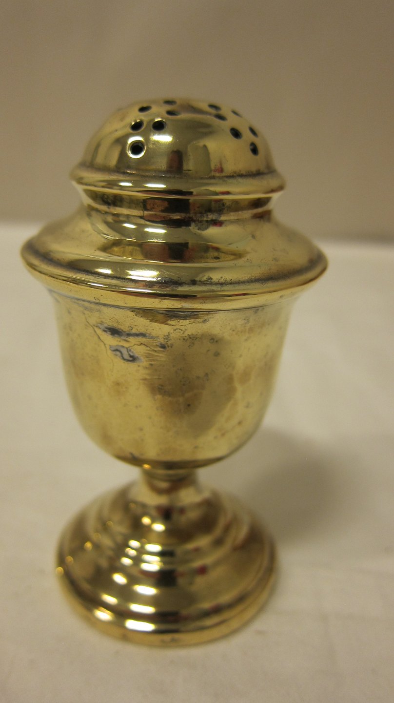 Item for sprinkling of salt or sugar, made of brass, ca. 1850 H: about 9cm Please note the traces from use Articleno.: 91612