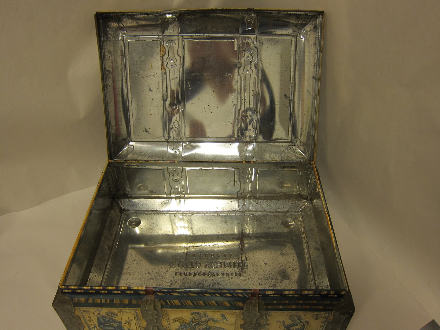 Biscuit-box/Can, big and rear, made of metal, with a lid