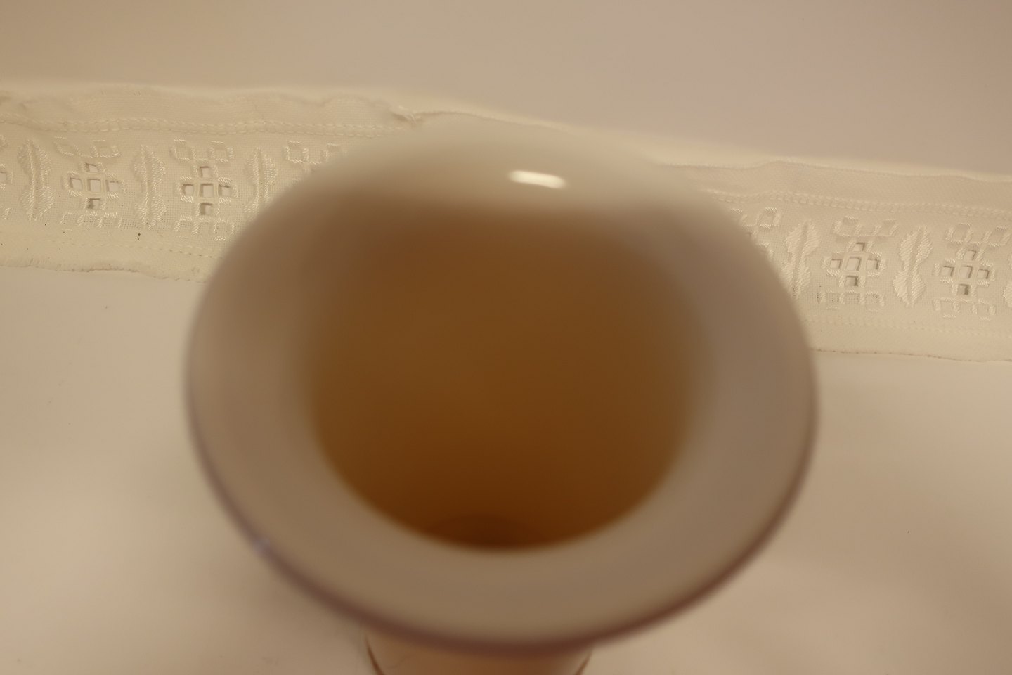 The beautiful caramel-colour outside with opal white hvidt glass inside