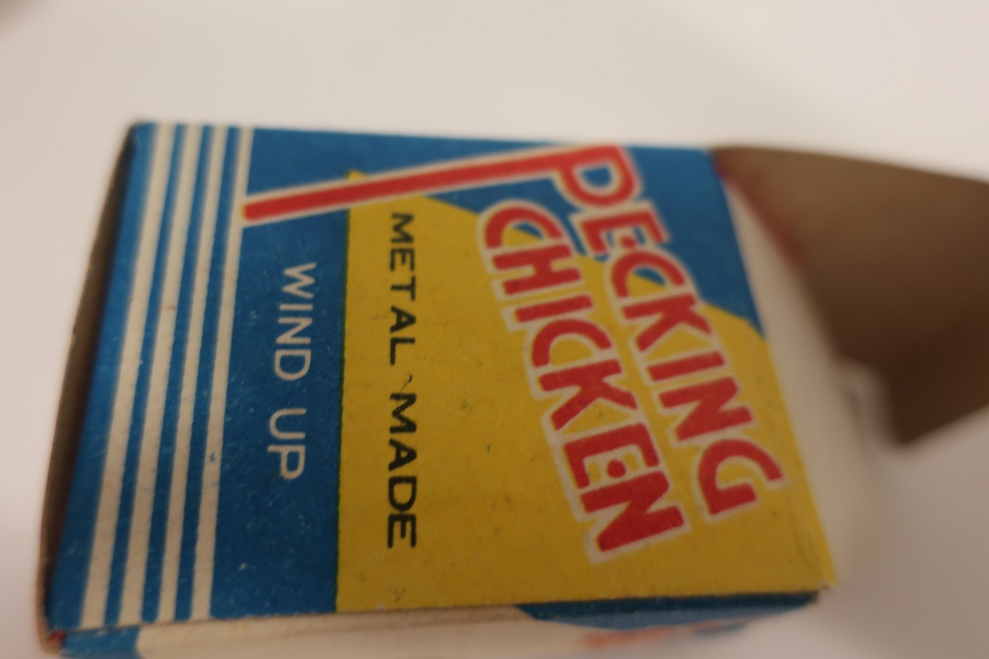 Text at the box: "Pecking Chicken", "Metal Made", "Wind up", "MS 006"