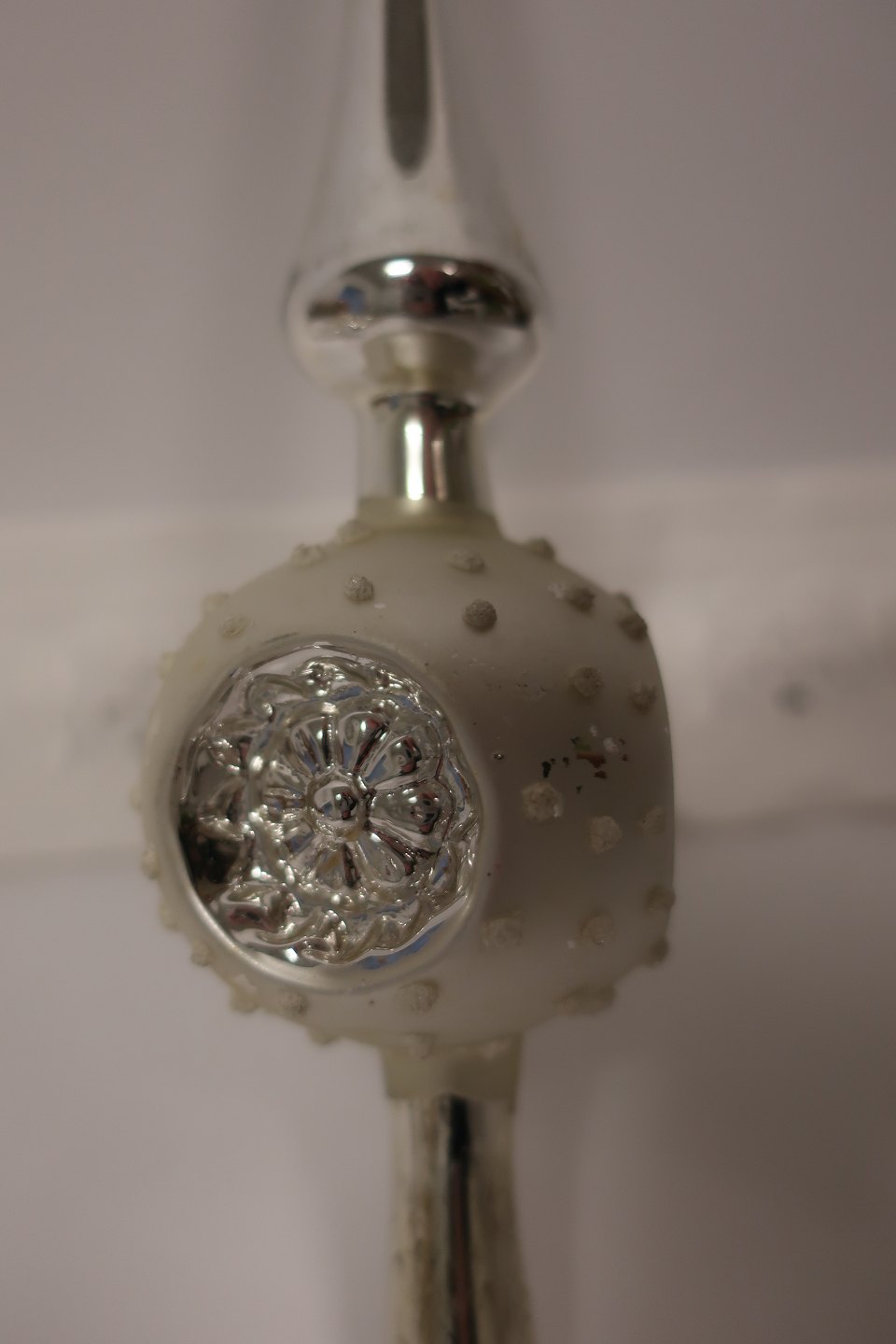 Julespir af glas Gammelt, smukt julespir med reflektor, sølvfarvet, - flere detaljer God stand Varenr.: 4-020112f