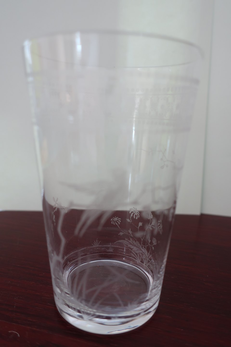 Antikt smukt vandglas Rigt på forskellige ætsninger Fra ca. 1900 God stand Varenr.: L1006