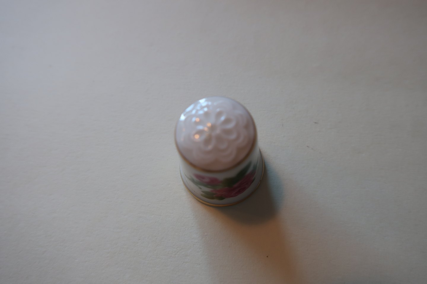 Old thimbles made op porcelain Decoration with a rose An the top is the decoration made like a flower In a good condition Articleno.: 4-31116