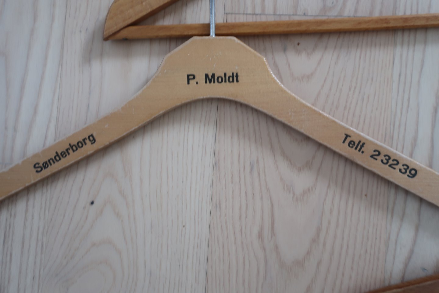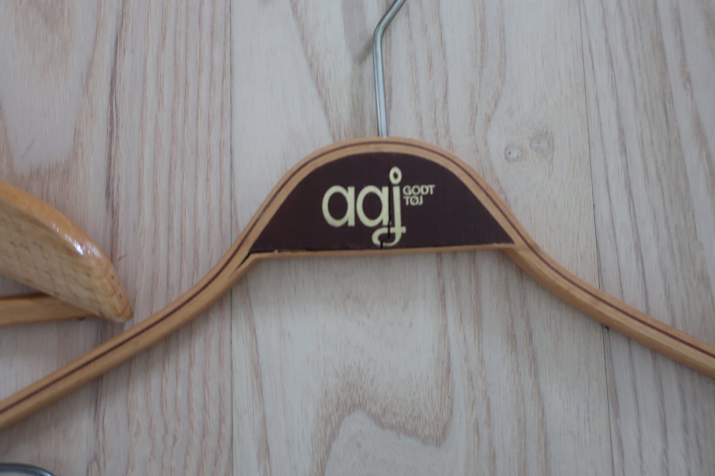 Coat hangers made of wood - old With texts from brands/shops Decorative and good in use In a good condition Articleno.: 4-61462