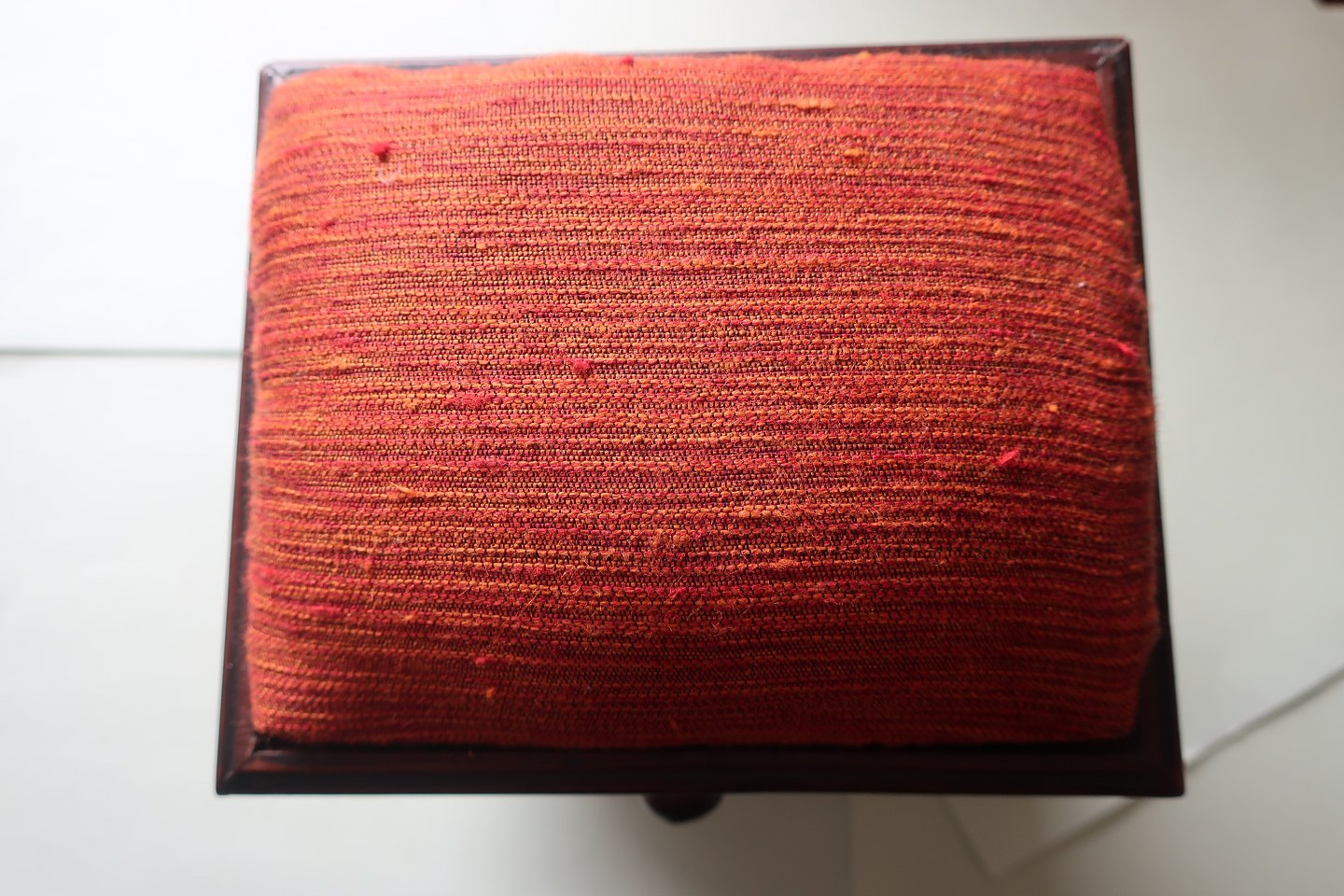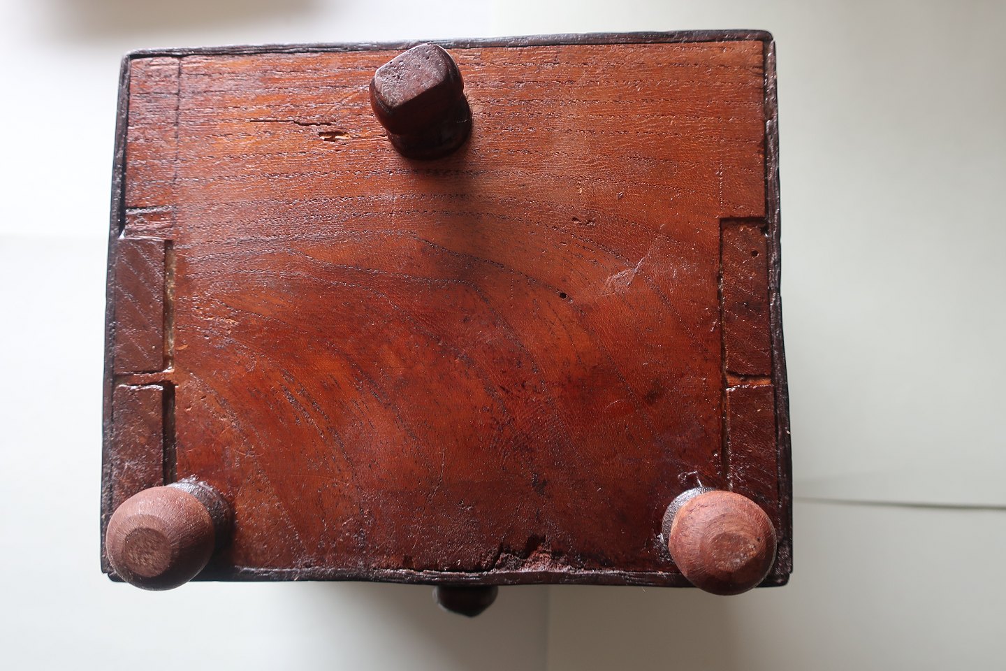 Antik nålepude med syskrin i form af 2 skuffer Kan fastgøres til kanten af bordet Med nymonteret nålepude med gammelt stof Smuk og praktisk H: 16cm B: 14,5cm D: 12cm I god stand Varenr.: 2-4115