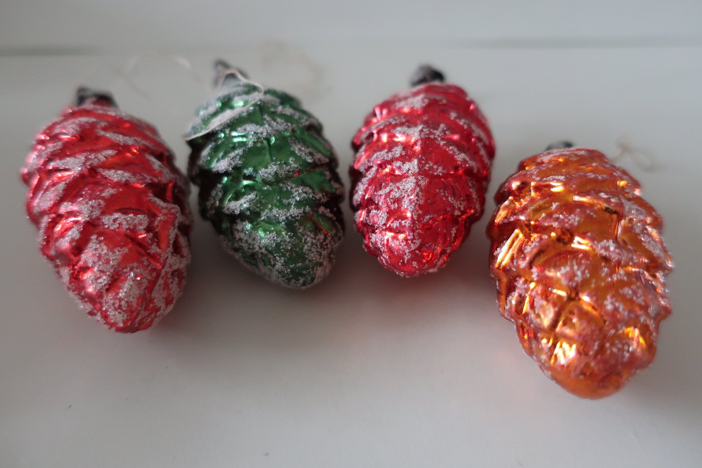 Agern i glas Gammelt julepynt til juletræet Farvet glas med "snedrys" Sælges samlet eller enkeltvis God stand Articleno. Li2