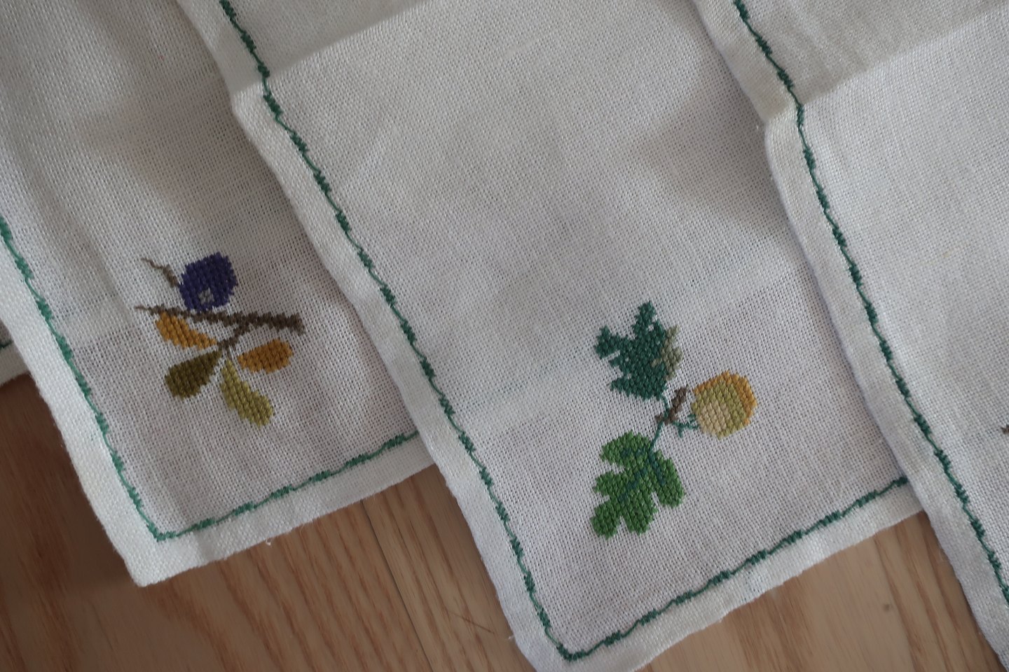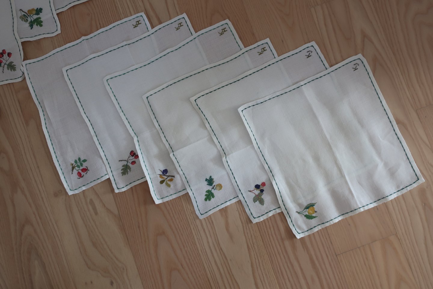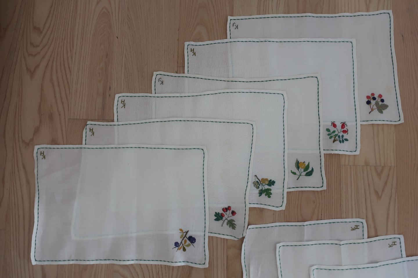 A set of old place mats and doilies 86 + 6 items) Made by hand with motivs of flowers and nature In a very good condition Articleno.: L1006