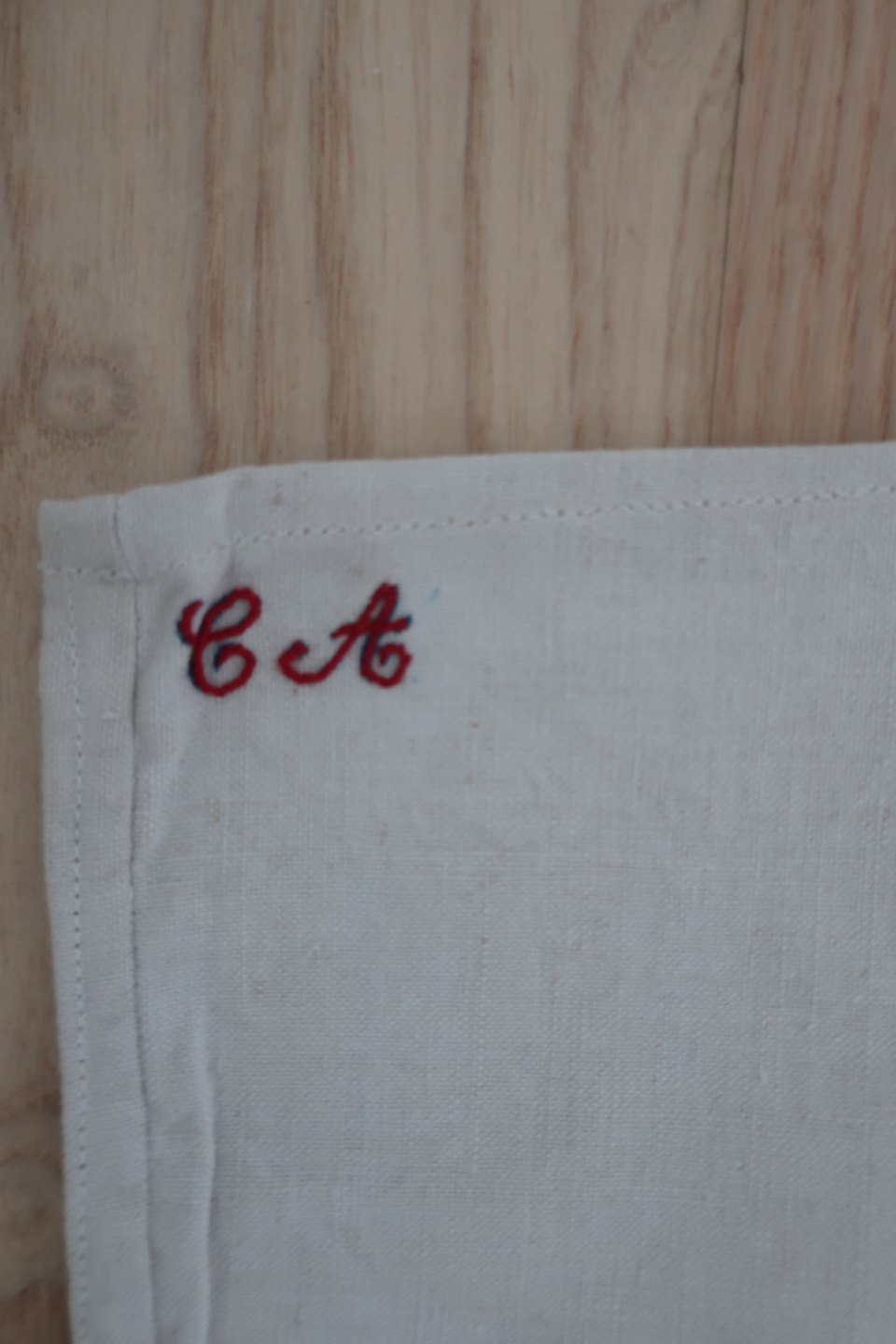 Gammel Vaskepose, smukt håndbroderede røde initialerne CA