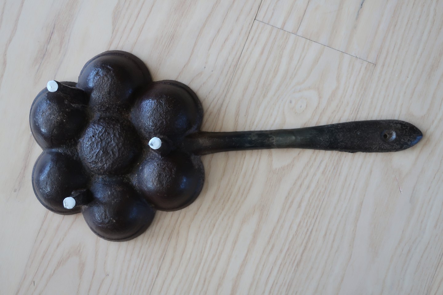 A tool to make the small cakes of batter cooked over the fie in this special kind of pan
