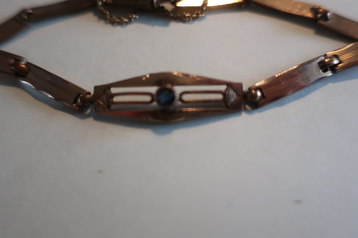 Utraditionelt og smukt gammelt armbånd med et led med blå sten