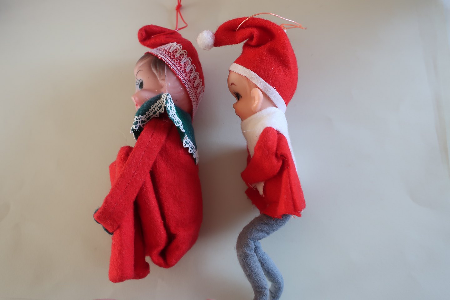 2 alte Heinzelmänchen mit den Armed um der Beine Aus der 1960-Jahren H: um 12,5cm In sehr gutem Zustand Warennr. KL1005