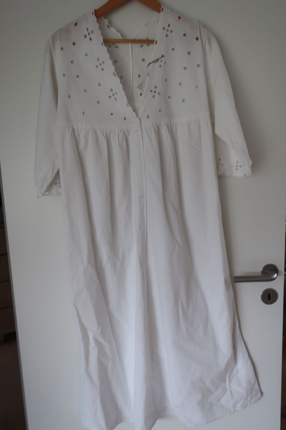 An antique shift with hand made decorations to make the dress beautiful