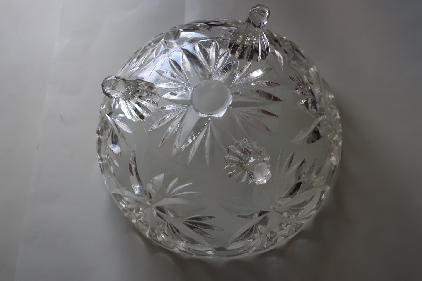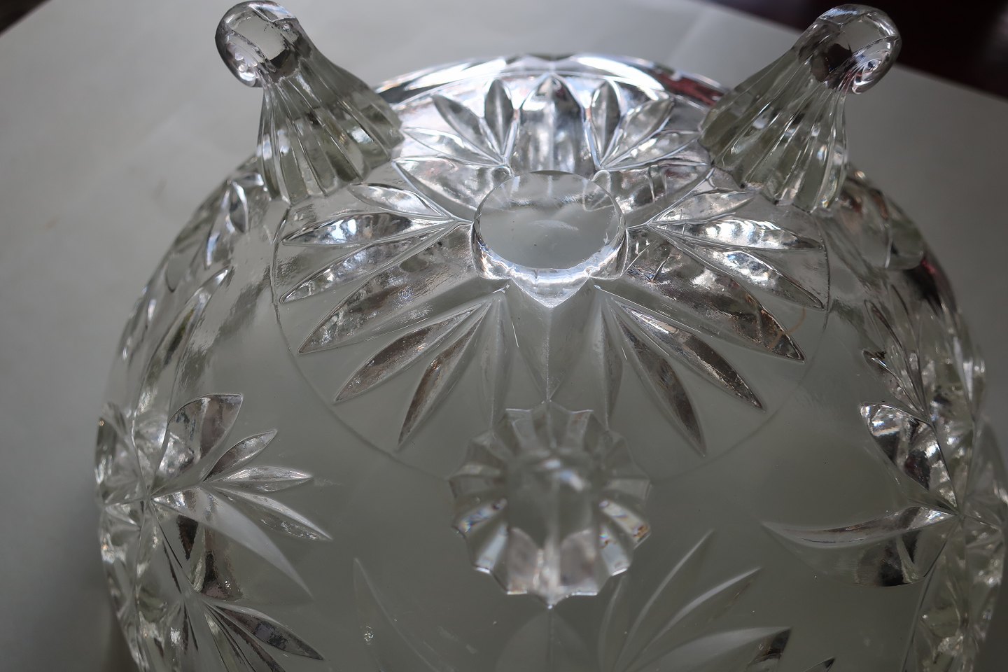 Gammel skål af krystalglas Med 4 fødder samt hank